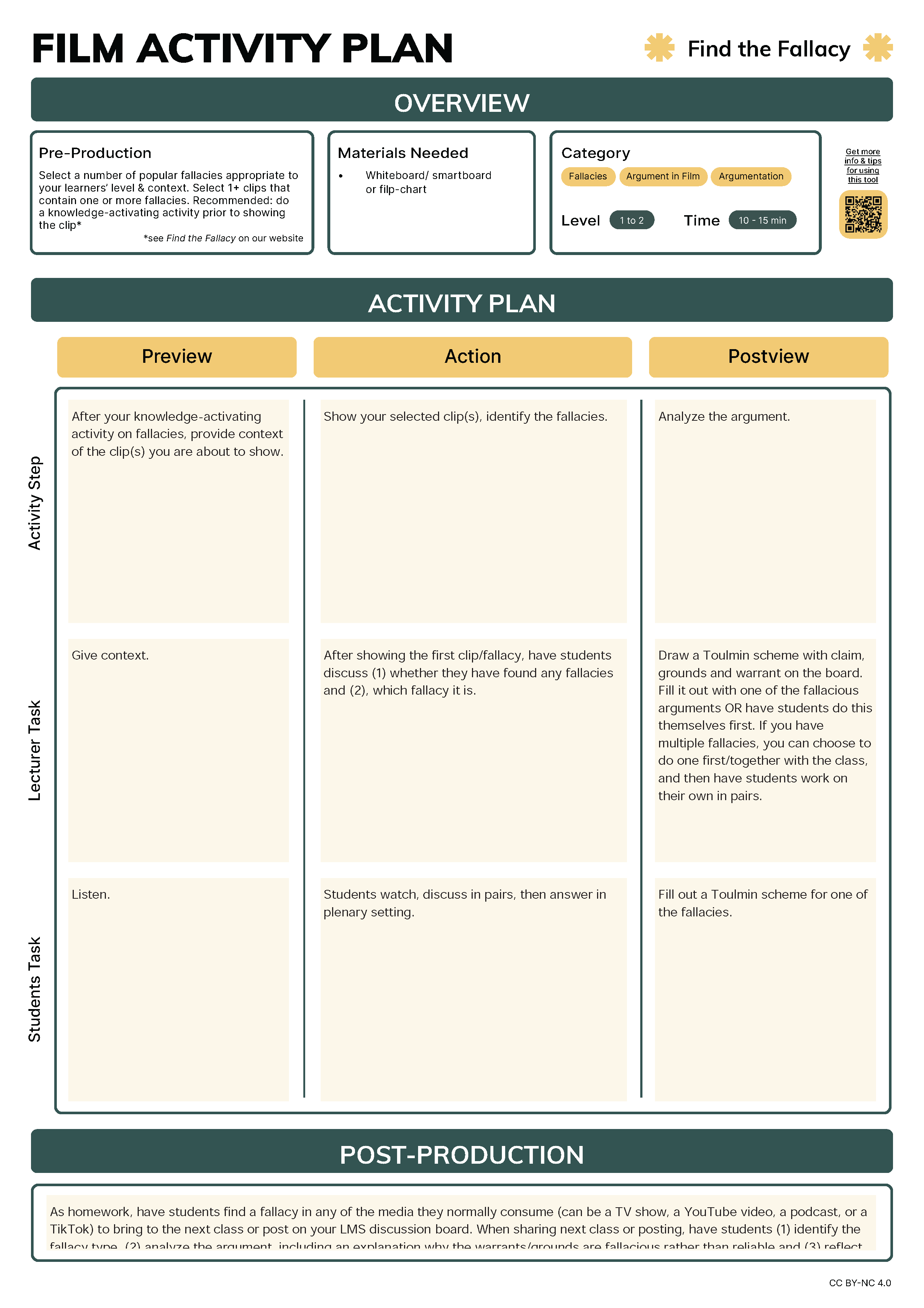 Fallacies are mistakes made in the construction or presentation of an argument. They can occur by mistake or to encourage a particular effect (in marketing or political debates). This activity will encourage students to begin spotting fallacies in the media they consume, even in content that may seem to be presenting reliable, convincing arguments.